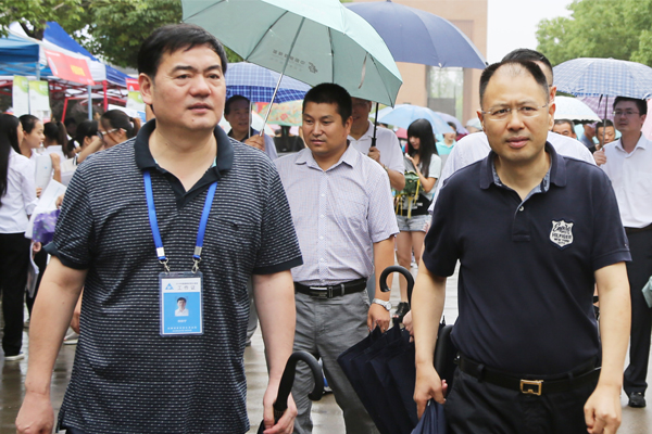 6月26日上午,由安徽省教育招生考試院主辦的安徽省2015年普通高校招生(皖中片)現場咨詢會在安徽新華學院舉行,這是安徽新華學院自2011年起連續承辦的第5次高招咨詢會。來自全國20個省市的300余所高校的工作人員現場為考生和家長提供咨詢服務,解答報考疑惑。安徽省教育廳副廳長李和平冒雨親臨現場指導工作,并看望參展高校代表,與考生和家長進行了深入的交流。安徽省教育招生考試院副院長邸建偉、新華集團董事長吳俊保,集團公司副總裁、安徽新華學院執行董事王孝武,校領導胡昭林、石秀和、陸真、楊世國、倪征在現場陪同。